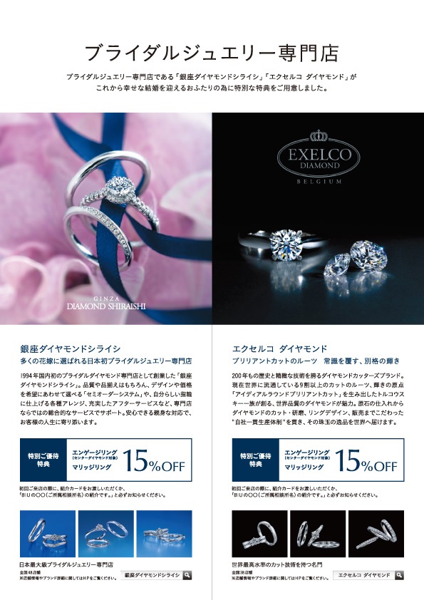 銀座ダイヤモンドシライシとエクセルコダイヤモンドの指輪割引きのご案内